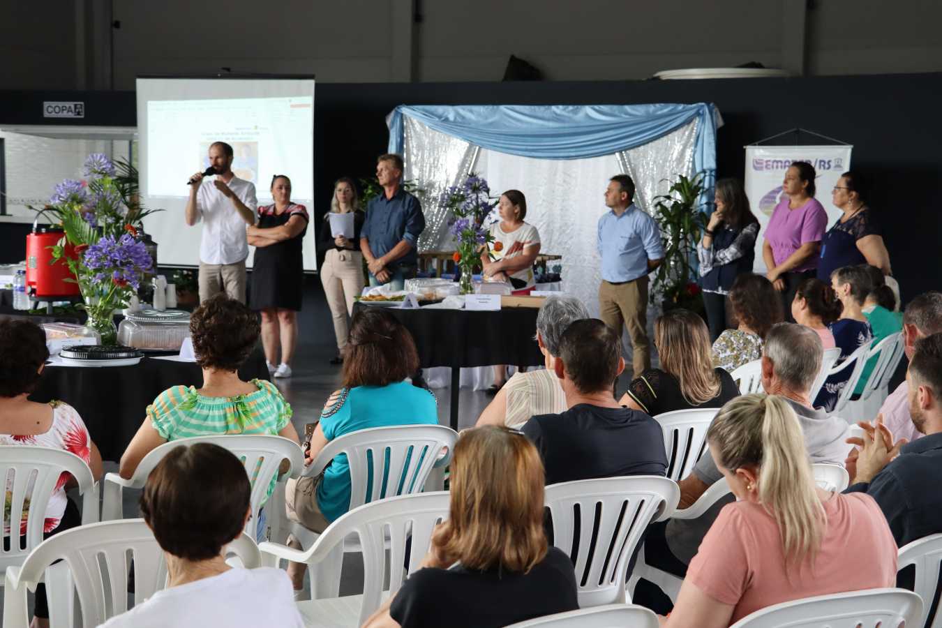 Todas as mulheres representaram diferentes Grupos de Mulheres que recebem ao longo do ano assessoramento da Emater/RS-Ascar, vinculada à Secretaria Estadual de Desenvolvimento Rural, em temas como geração de renda, bem-estar social, organização social e comunitária e segurança e soberania alimentar.
