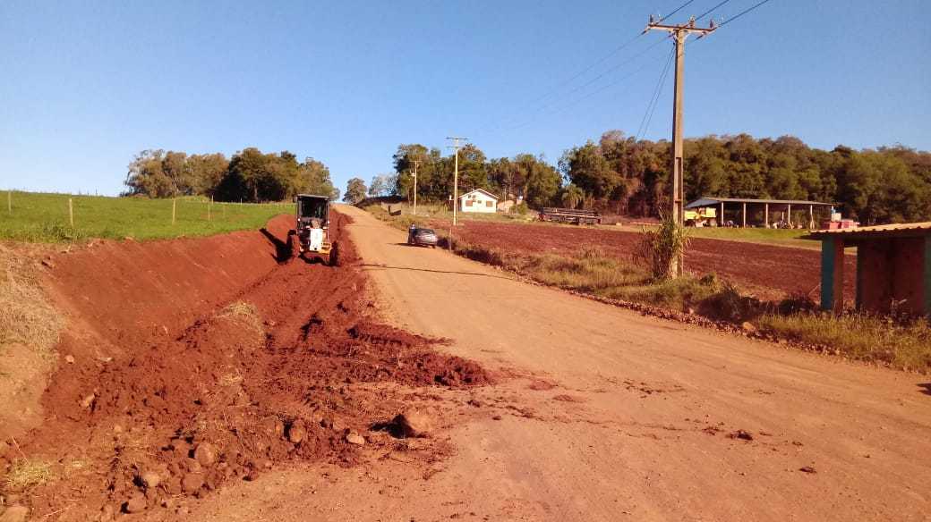 Foi iniciada nesta quarta-feira (3/6) a preparação da estrada, na encruzilhada na Vila Santa Catarina, em Salvador das Missões, para receber pavimentação com pedras irregulares (calçamento).