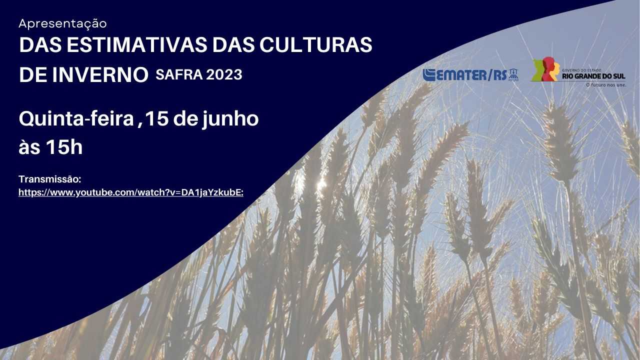 Nesta quinta-feira (15/6), às 15h, a Emater/RS-Ascar vai apresentar as estimativas iniciais da Safra de Inverno 2023, no Rio Grande do Sul.
