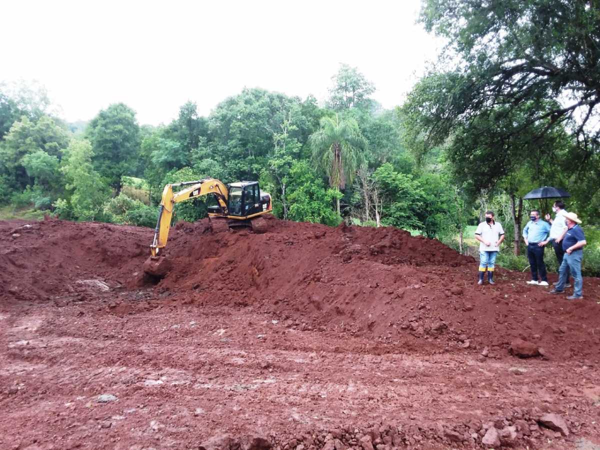 Ontem (26/11), o presidente da Emater/RS, Geraldo Sandri, acompanhado do gerente regional adjunto José Vanderlei Waschburger, do vice-prefeito Eduardo Ludwig, da equipe municipal da Emater/RS-Ascar e de lideranças locais acompanharam o início da construção do açude, que será destinado à irrigação de pastagens na propriedade de Tenésio e Delci Balz, em São José do Inhacorá.