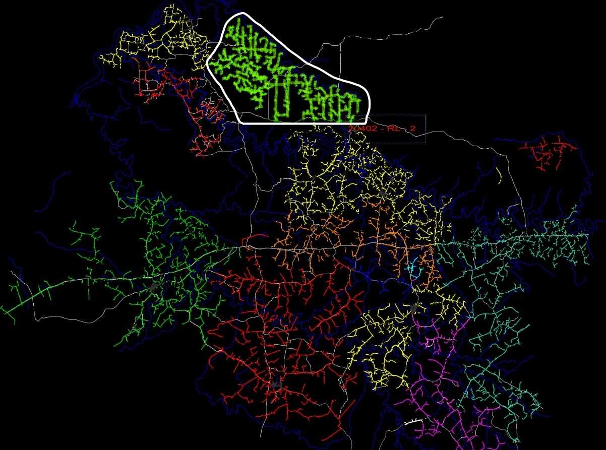 No mapa acima, a parte demarcada com a linha branca identifica as redes afetadas pela falta de energia no alimentador de Cerro Largo.