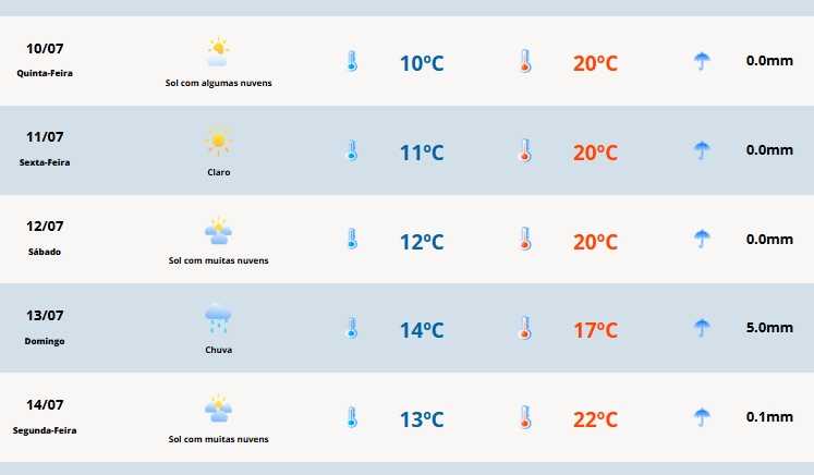 Em Cerro Largo a temperatura vai oscilar entre 10°C e 20°C.