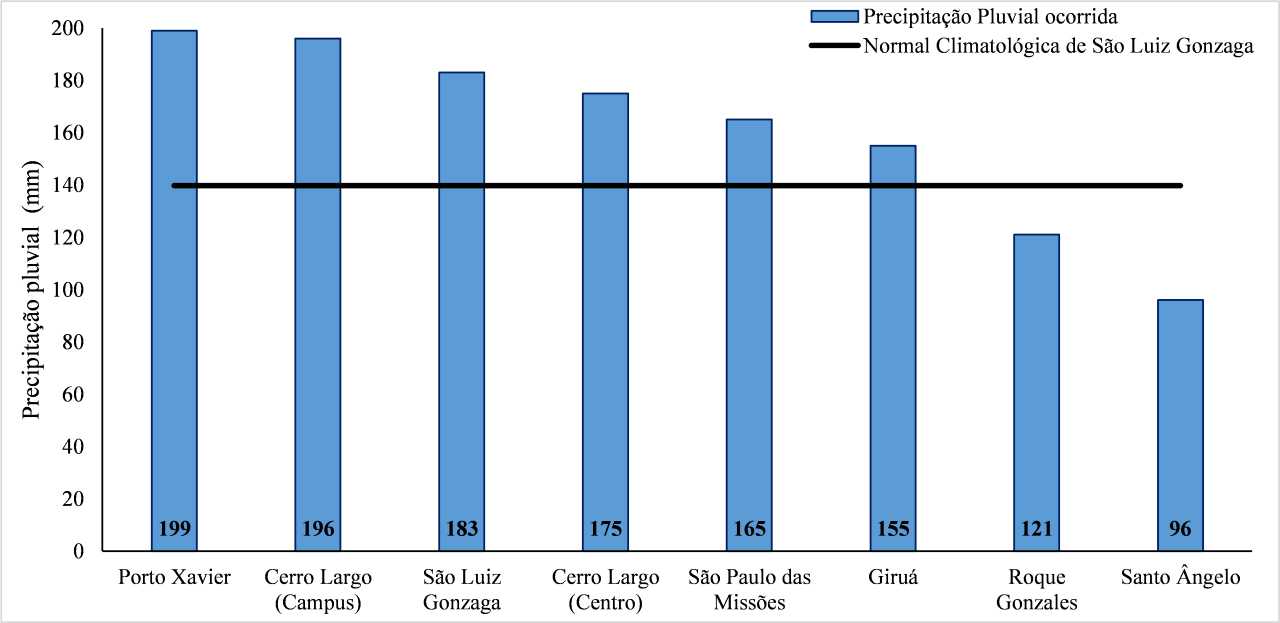 Em Porto Xavier, o acumulado de chuva foi 42% maior que a Normal Climatológica e superior ao dobro registrado em Santo Ângelo. Ainda assim, mesmo os valores observados em Santo Ângelo podem ser considerados próximos do satisfatório para as lavouras de da região. A condição hídrica do solo apresentou uma significativa melhora em relação ao mês anterior, quando ocorreram chuvas muito abaixo do normal.