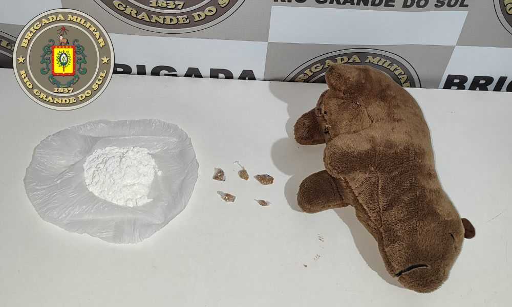 Ao tentar abordar o indivíduo, este arremessou um ursinho de pelúcia no chão e fugiu. O suspeito foi alcançado e, na busca pessoal, nada de ilícito foi encontrado. Contudo, ao revistar o urso arremessado, que apresentava costura aberta, foi localizada a quantia de 33,4 gramas de cocaína e seis pedras de crack embaladas para a comercialização.