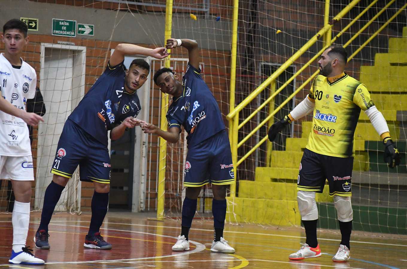 Os visitantes começaram a mostrar as garras logo no início da partida na fria noite de sábado em Carazinho. Na troca de passes, bola com o goleiro Jacky, que invadiu o meio da quadra adversária, chegou na entrada da área e chutou de canhota na gaveta do goleiro Samuel! Placar aberto com 13 segundos de jogo!
